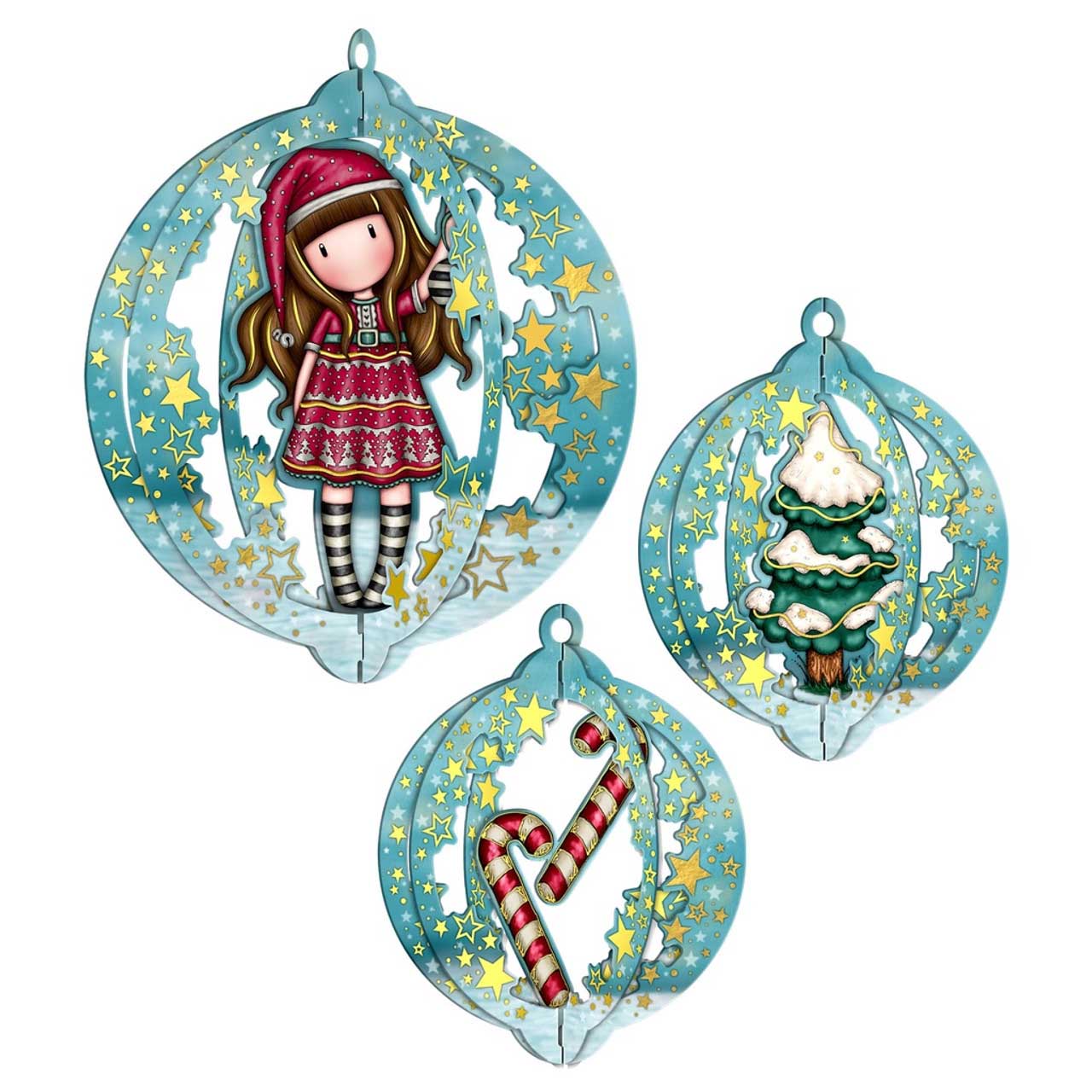 Set od tri kartonske 3D dekoracije iz Santoro Gorjuss novogodišnje kolekcije proizvoda.
