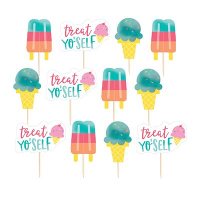Set 24 ukrasna štapića za posluženje sa dekoracijom na vrhu u obliku sladoleda. Dimenzije 8cm