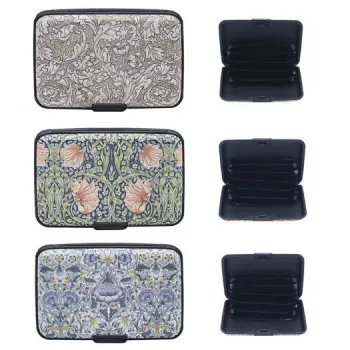 Metalna lagana futrola za vizit kartice elegantnog dizajna. Sadrži bočni preklopni poklopac za lakše pristupanje karticama. Podržava otprilike 10 vizit karti u zavisnosti od debljine. Pogodna i za manji broj platnih kartica i ostalih dokumenata. Dimenzije 9,5 x 5,9 x 0,6cm.