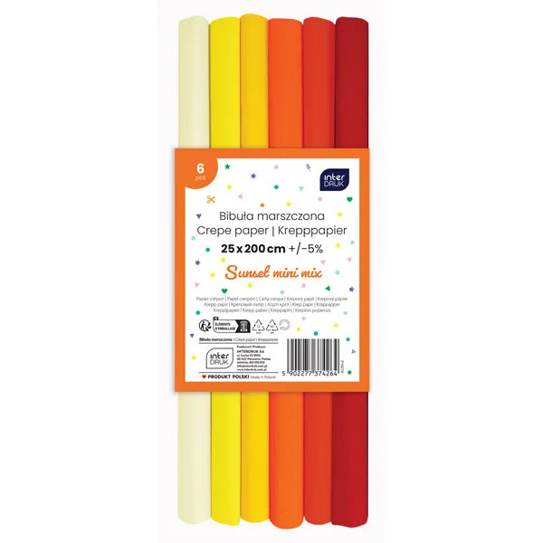 Naziv artikla: CREPE PAPER MIX MINI 6 SUNSET 200X25CM | Proizvodjac: INTERDRUK SA | Zemlja porekla: Poljska | Zemlja uvoza: Poljska | Uvoznik: Knjizare Vulkan | Materijal: papir | Godina uvoza: 2025 | Uzrast: 5+
