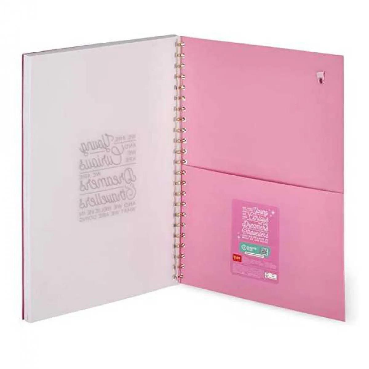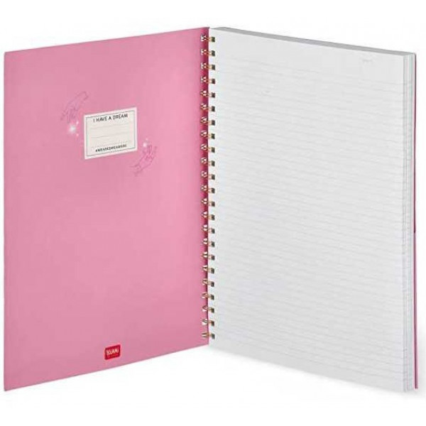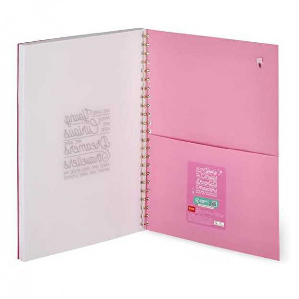Notes atraktivnog dizajna. Poseduje 204 stranice od toga: 86 na linije, 86 na kvadratiće i 86 na tačkice. Napravljen je od kvalitetnog 100g/m2 papira. Dimenzije 29,5x22cm. Poseduje elastičnu traku za sigurnije zatvaranje koja može poslužiti i kao obeleživ