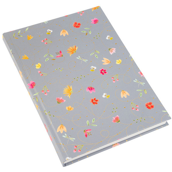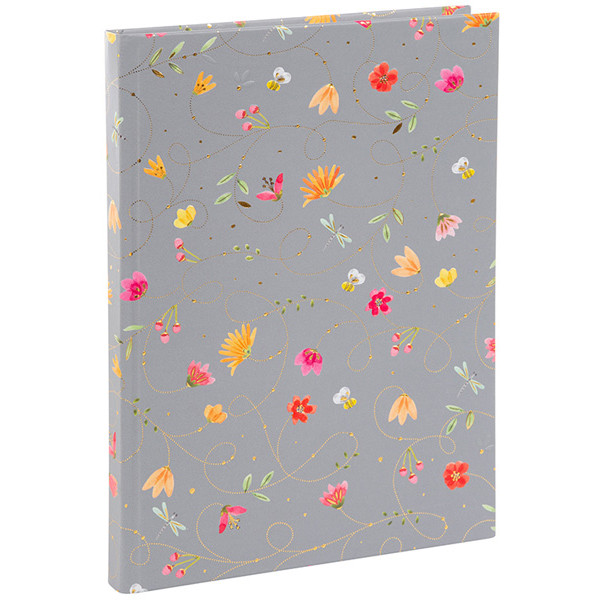 Tvrdokoričeni notes A5 formata, cvetnog dizajna, sa 128 stranica na linije i elastičnom...