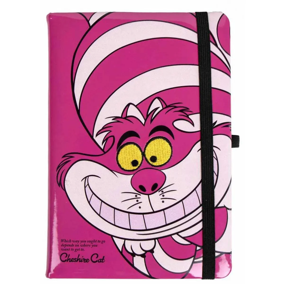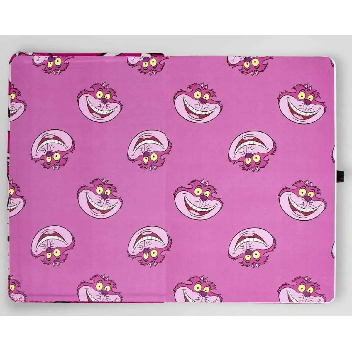 Notes A5 formata sa motivom Češirske mačke iz Alise u Zemlji čuda. Poseduje elastičnu traku za sigurnije zatvaranje, kao i lastiš za odlaganje hemijske olovke.