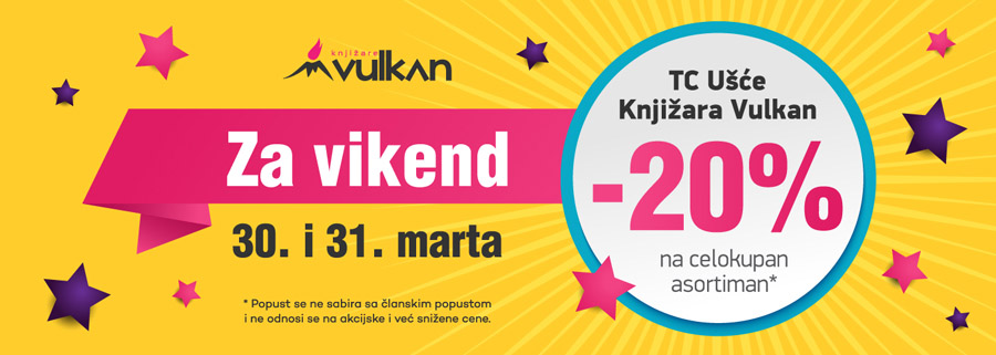 Pozivamo vas da tokom vikenda 30. i 31. marta posetite našu knjižaru Vulkan Ušće i iskoristite popust od 20%* koji ćemo davati povodom proslave 10. rođendana SC Ušće.