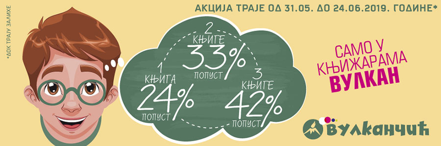 Akcija se odnosi za odabrani spisak naslova u periodu od 31. maja do 24. juna 2019. godine** i važi u svim našim knjižarama kao i na sajtu.