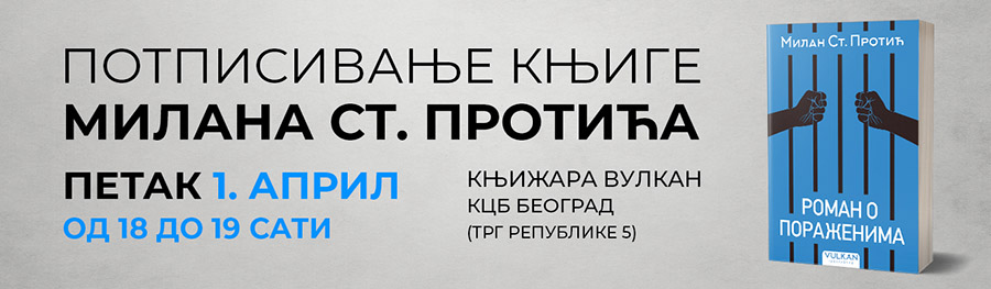 Potpisivanje knjige „Roman o poraženima“ Milana St. Protića u petak, 1. aprila