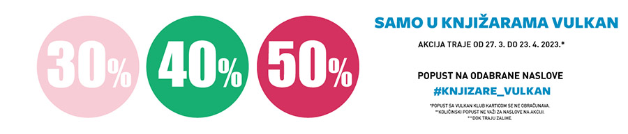 Od 27. marta do 23. marta 2023. godine, u svim našim knjižarama kao i na sajtu mozete kupiti odabrane naslove u izdanju Vulkana po super popustima od 30%, 40% i 50%.