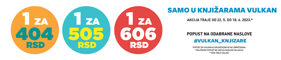 Od 22. maja do 18. juna 2023. godine, u svim našim knjižarama kao i na sajtu mozete kupiti odabrane naslove u izdanju Vulkana po super cenama od 404, 505 i 606 dinara.