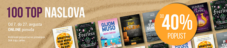 Od 7. do 27. avgusta 2025. godine samo ONLINE, možete kupiti neki od 100 NAJČITANIJIH naslova u 2025. godini sa ONLINE popustom i do 40%.