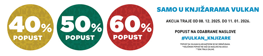 Od 8.12.2025. do 11.1.2026. godine, u svim našim knjižarama kao i na sajtu možete kupiti odabrane naslove u izdanju Vulkana po super popustima od 40%, 50% i 60%.