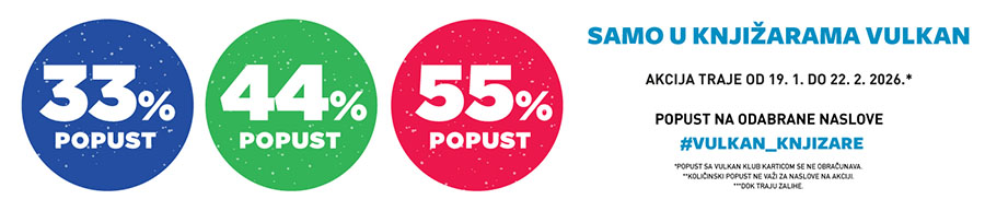 Od 19.1.2026. do 22.2.2026. godine, u svim našim knjižarama kao i na sajtu možete kupiti odabrane naslove u izdanju Vulkana po super popustima od 33%, 44% i 55%.