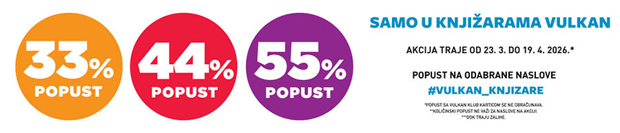 Od 23.3.2026. do 19.4.2026. godine, u svim našim knjižarama kao i na sajtu možete kupiti odabrane naslove u izdanju Vulkana po super popustima od 33%, 44% i 55%.