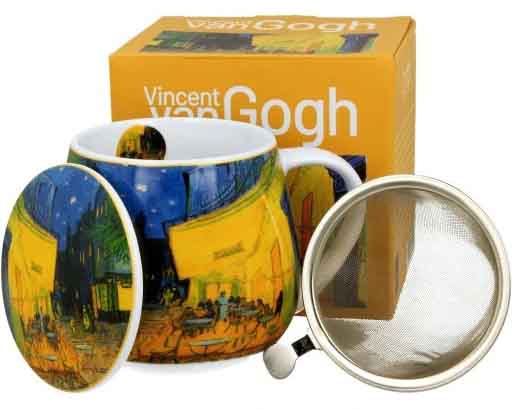 Velika porcelanska šolja za čaj sa motivima poznate slike Vinsenta van Goga. Šolja poseduje infuzer za čaj i poklopac koji će održavati toplotu vašeg čaja. Šolju možete koristiti u mikrotalasnoj pećnici (osim infuzera) i prati u mašini za pranje sudova.